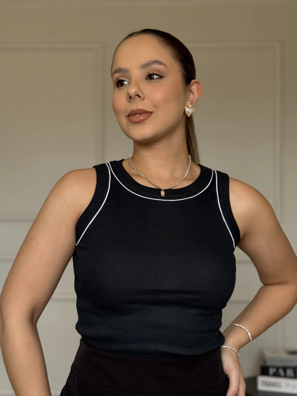 Regata com detalhe em vivo Preto/Branco