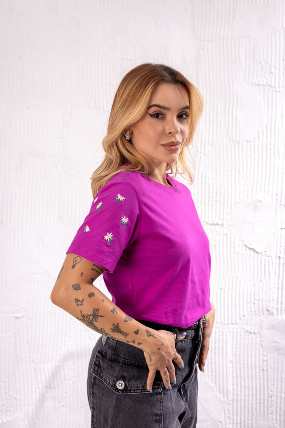 Tshirt com modelagem tradicional de camiseta gola''O'' com ribana e costura ombro a ombro.